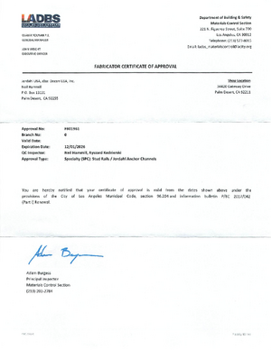 JORDAHL® Anchor Channels ICC-ES ESR-2854