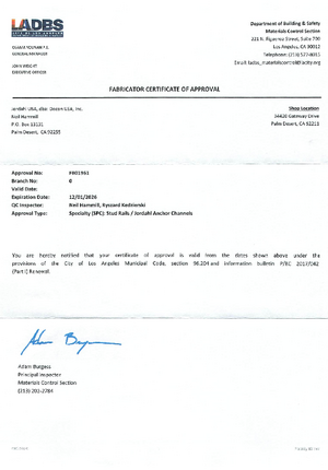 Fabricator Certficate of Approval